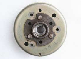 Bisa dibandingkan dengan magnet spesial engine pabrikan Yamaha itu. Yuk lihat magnet YZ yang punya diameter lebih kecil. Kalau diukur menggunakan sigmat sekitar 75 mm. Dimensi kecil untuk mengejar putran ringan, ujung-ujungnya supaya putaran mesin tidak berat.